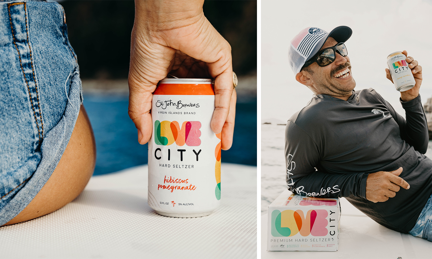 Making ‘Love City’ – the first-ever hard seltzer crafted on St. John What does a well-established craft brewery in the Virgin Islands do during a global pandemic? Well, if you’re St. John Brewers, you go ahead and dive into the highly competitive hard seltzer category. And we couldn’t have been more excited to dive in alongside them. With the ‘Love City’ name already chosen, we got right to work on logo design concepts. We knew it would have to POP off the shelf in order to compete with the market leaders. Once we unanimously aligned with our clients on “the one”, we rolled right into package design, tagline and headline writing, campaign strategy, point-of-sale and out-of-home signage, branded merchandise, social content, and PR. As an added surprise, we had the opportunity to create a 15-second TV spot and 4-second micro-ad which would air during the 2021 Super Bowl on the Virgin Islands CBS affiliate. It was an all-hands-on-deck push to the launch and we could not be more in love with the results.