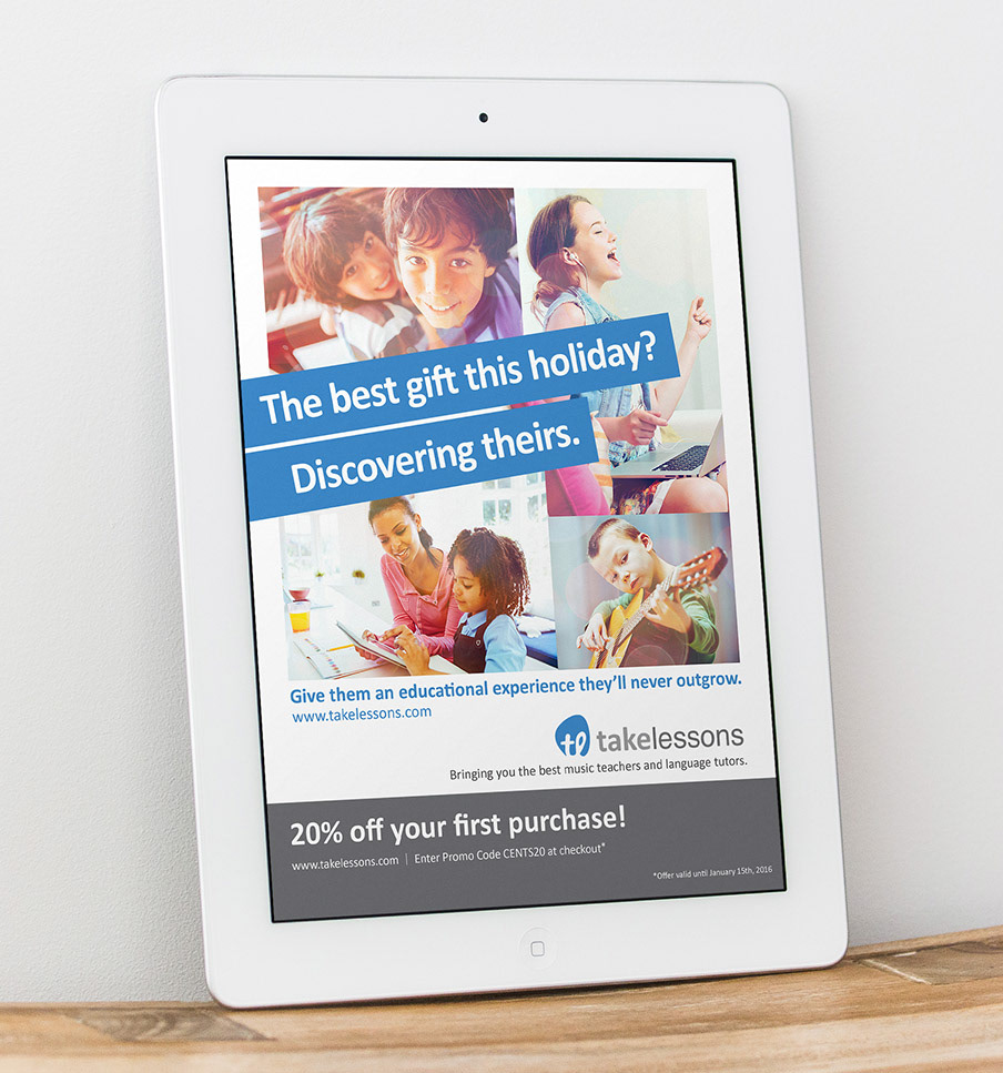 In 2013, TakeLessons realized they needed to rethink their logo. Originally, the brand had offered lessons only in the field of music, but they were quickly evolving and would soon be covering over two hundred categories of learning. The client was looking for a new design that would be forward-thinking and representative of the tech company that they were fast becoming but would not be a complete departure from the music category where it all began. As a bit of visual homage to the company’s origins, the shape of the new logo resembles a guitar pick, but it is abstract enough to universally encompass every category of learning.